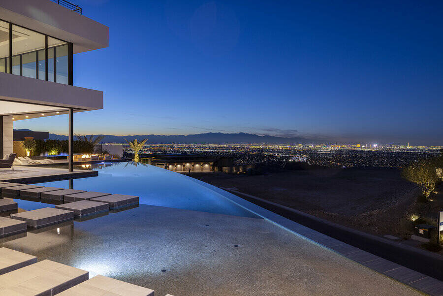 A custom-built house perched high above the lights of the Las Vegas Strip has gone on the market for $18.5 million.
