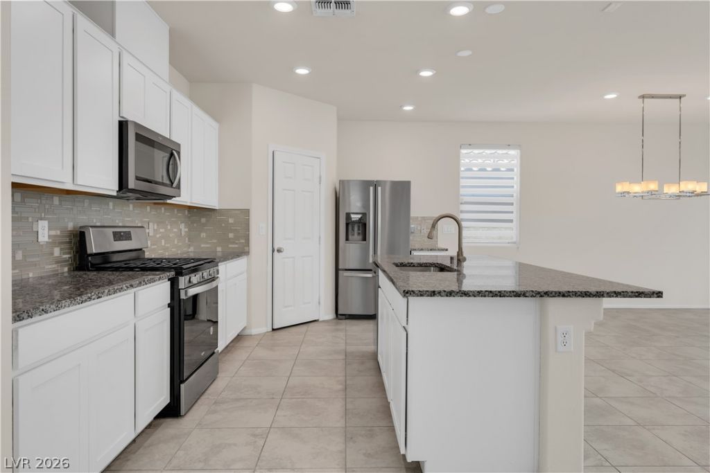 Beautifully Upgraded, Move-In Ready 4-Bedroom Home in Desirable Southwest! This stunning 4-bedroom, 2.5-bath home features a spacious open floor plan perfect for modern living. The kitchen seamlessly flows into the large great room and includes a large island, stainless steel appliances, pantry, and sliding glass doors that lead to a covered patio and a fully landscaped backyard?ideal for entertaining. The oversized primary suite offers a spa-like retreat with a spacious shower, soaking tub, and large walk-in closet. Additional highlights include a second-floor laundry room and a large loft for extra living space. Conveniently located just minutes from everything Las Vegas has to offer, including shopping, dining, schools, entertainment, freeways, parks, and hiking. Don't miss out on this incredible opportunity!